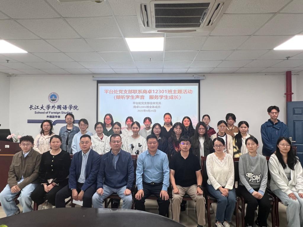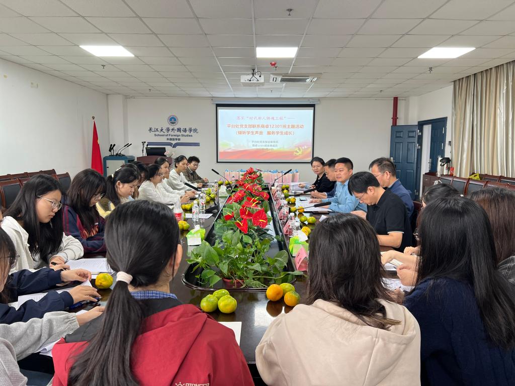 (通讯员 陈爱霞)为在学生社区践行育人“一线规则”,落实“时代新人铸魂工程”,9月25日上午,平台处党支部全体党员干部深入外国语学院商卓12301班与学生“面对面”交流,座谈会由平台处党支部书记谭亮魁主持。